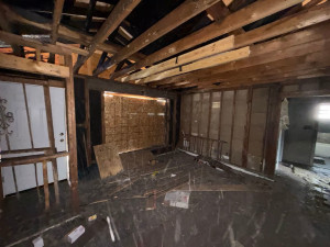 This 2-bedroom, 1-bath brick veneer home offers 1,042 square feet above grade plus a full basement, creating a solid foundation for a full-scale rebuild. With a strong floor plan and efficient layout, the property supports a clean renovation vision without unnecessary reconfiguration. Fire damage has already been addressed through completed demolition, saving time and upfront effort. The property is stripped down and ready for renovation, allowing a new owner to focus on construction and finishes rather than teardown. Mechanical components, including HVAC and a water heater, are available, adding value and flexibility during the rehab process. The one-story design and brick exterior provide long-term appeal once restored, while the full basement adds functional space to support mechanical systems or storage. This is a straightforward project geared toward an experienced renovator looking for a clean slate with clear upside through renovation execution. Property is being sold as-is. Buyer to conduct all due diligence regarding condition, utilities, and renovation scope.